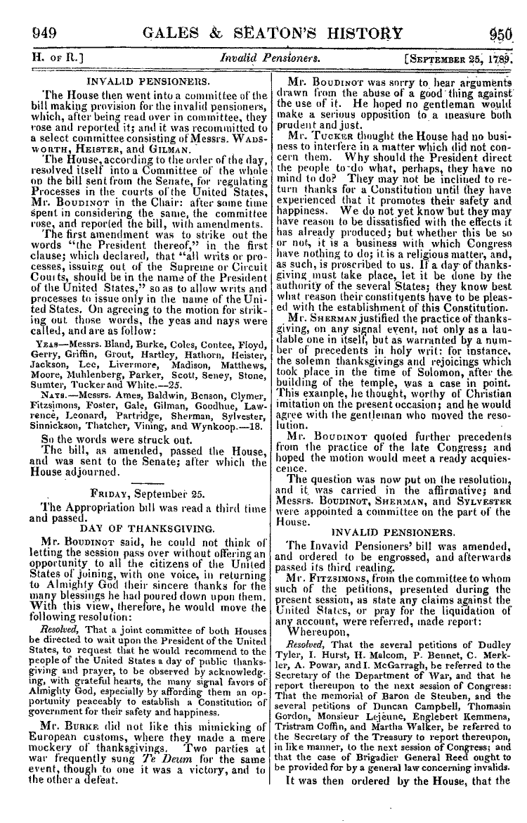 Roger Sherman of Connecticut rose to defend the resolution, arguing that the practice of thanksgiving was not just “laudable in itself” but also “warranted by a number of precedents in holy writ: for instance, the solemn thanksgivings and rejoicings which took place in the time of Solomon, after the building of the temple.”
